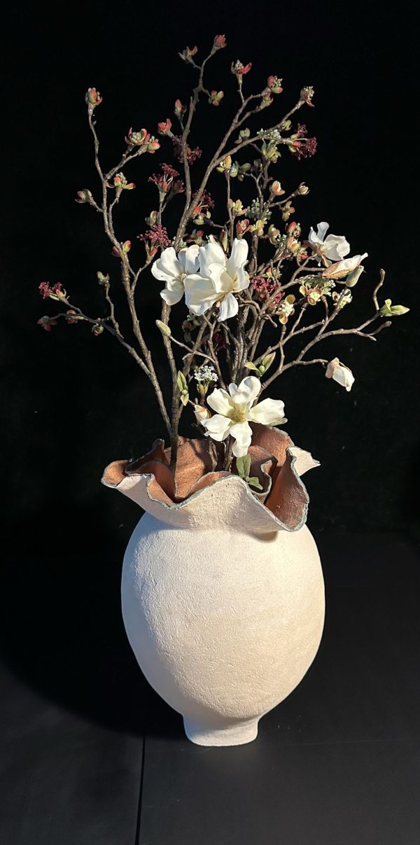 En contraste, les créations sculpturales en argile de Eileen plongent les spectateurs dans l’essence même de la matière. Ses pièces terreuses et organiques évoquent des formes minérales, empreintes de la sagesse ancienne de la nature et de son éternelle beauté. Chaque sculpture est un hommage à la résilience et à la chaleur de la terre.