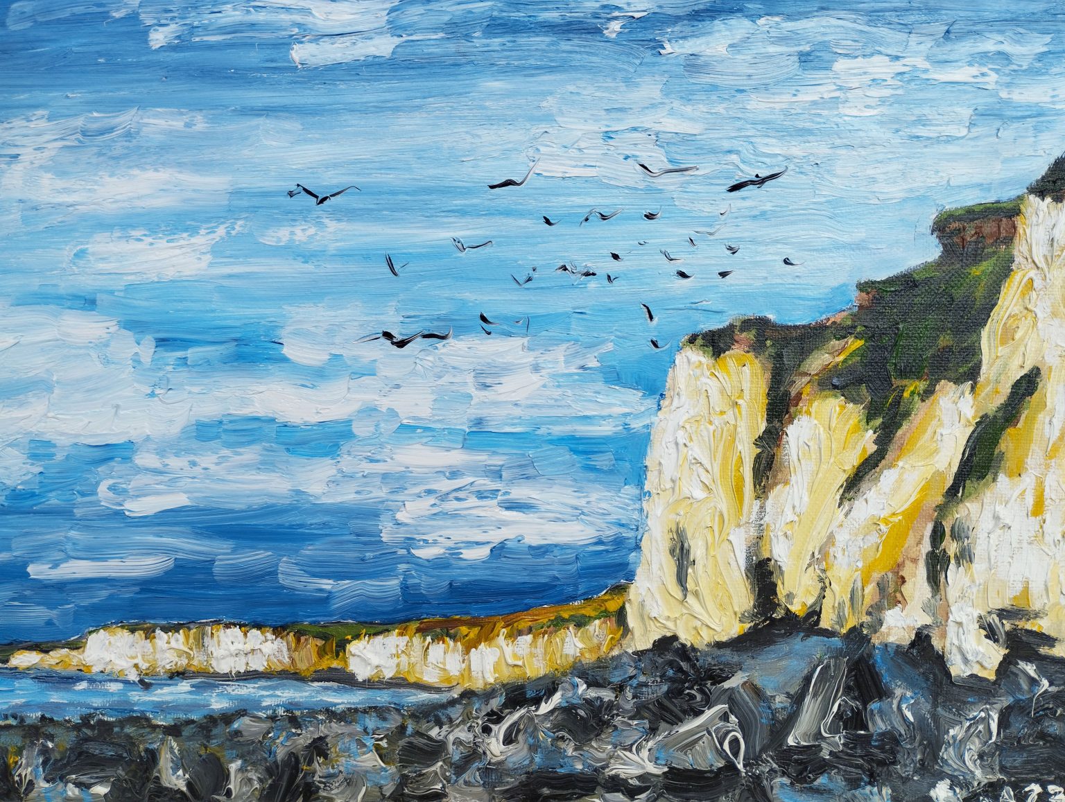 Peindre la mer qui s’arrête au pied des hautes falaises de la côte d’Albâtre ou l’authentique chalet d’alpage du Glarnerland n’a pas pour but de produire une image pittoresque, mais parle simplement du désir du peintre de vouloir retrouver le lien avec ses racines.